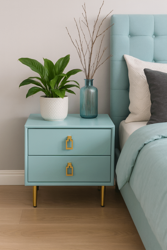 Leather Nightstand Side Table – Green Mint
