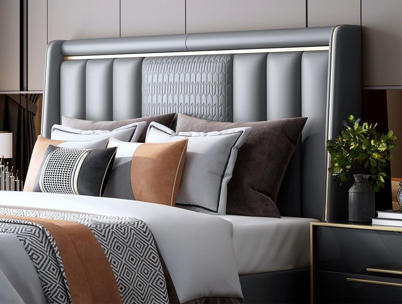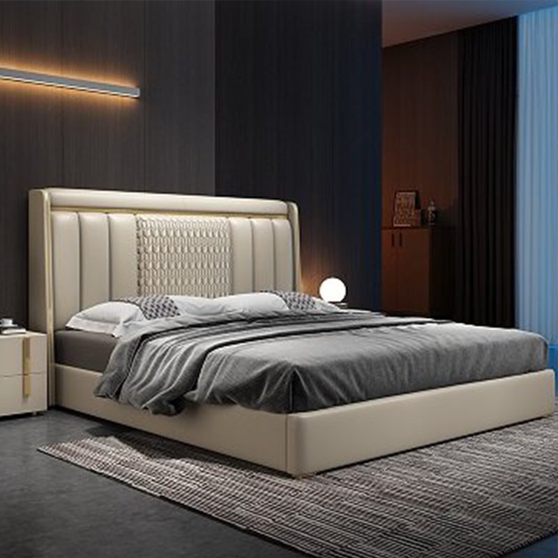 Its gracefully curved silhouette adds a soft, artistic touch, creating a statement of refined elegance that enhances any bedroom interior. The bed is elevated with titanium-plated accents, offering a sleek, modern finish that is resistant to corrosion, fading, and everyday wear, ensuring lasting beauty over time.