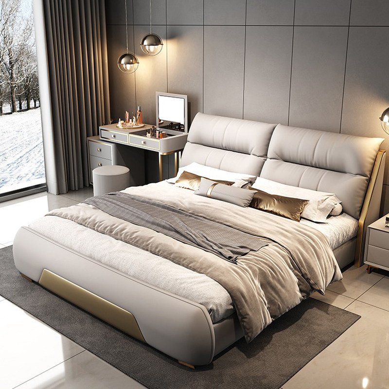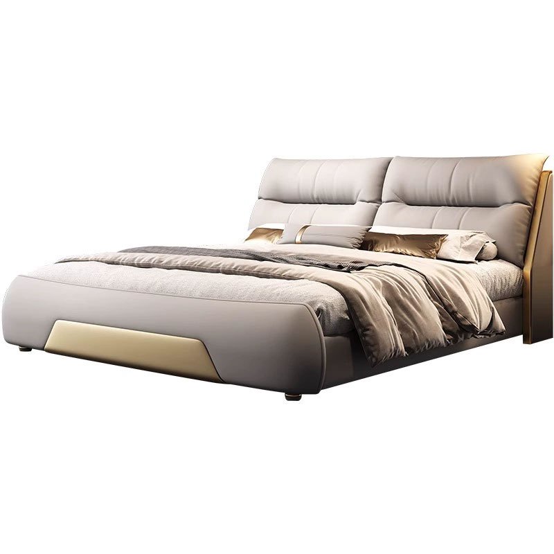 Its gracefully curved silhouette adds a soft, artistic touch, creating a statement of refined elegance that enhances any bedroom interior. The bed is elevated with titanium-plated accents, offering a sleek, modern finish that is resistant to corrosion, fading, and everyday wear, ensuring lasting beauty over time.