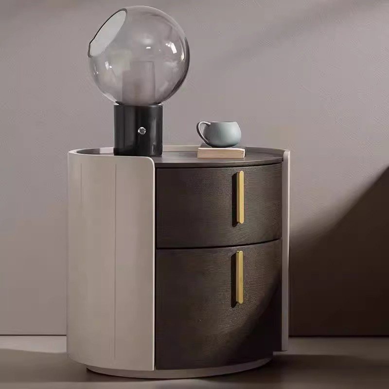 Crest Round Marble Top Leather Nightstand
