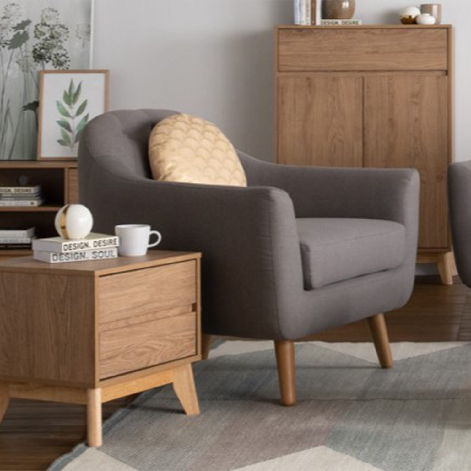 Made from oak for the chair legs and burrel fabric for the chair, this sofa guarantees durability and style. Measuring W880 D880 H830 SH510mm, the 1 Seater Sofa fits perfectly into any room, offering both functionality and aesthetic appeal. The chair leg comes in 112 oak color, while the chair features a 6560 grey color, adding a touch of elegance to any setting.