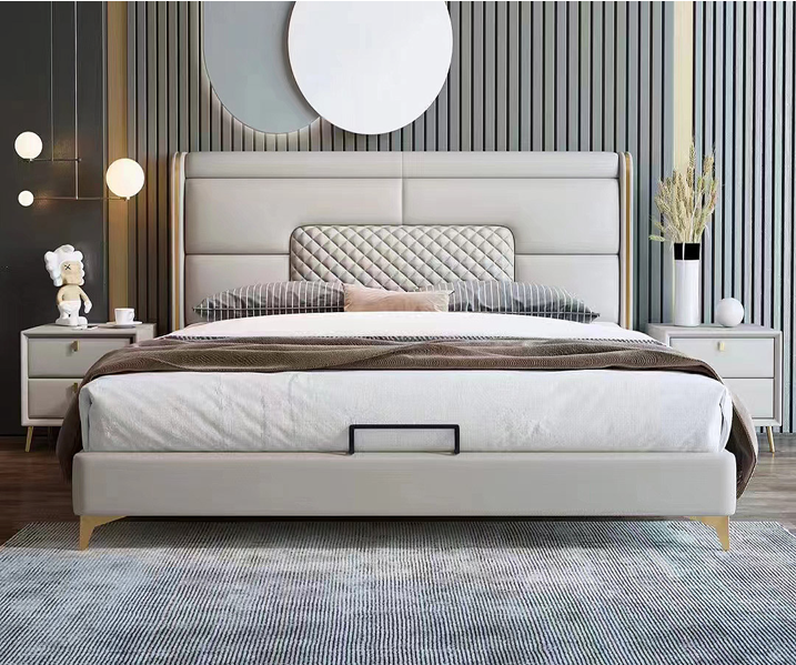 Sweet Night King Upholstered Leather Gas Lifting Bedframe