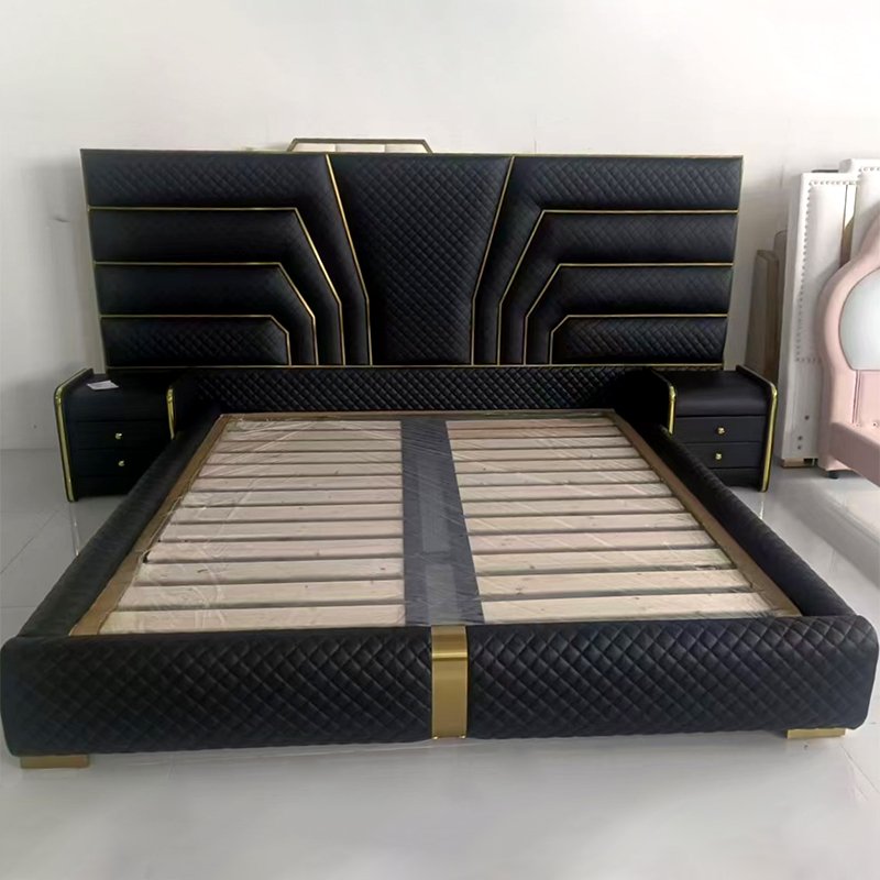 Material: Italy imported napa head grain leather , larch solid wood, high density high rebound good sponge 8K fine ground casting, stainless steel faux leather – solid wood pine – High density sponge The new upgrade widens and thickens the row skeleton So you can sleep through the night Stable, silent and loud, Carbon steel bed foot.