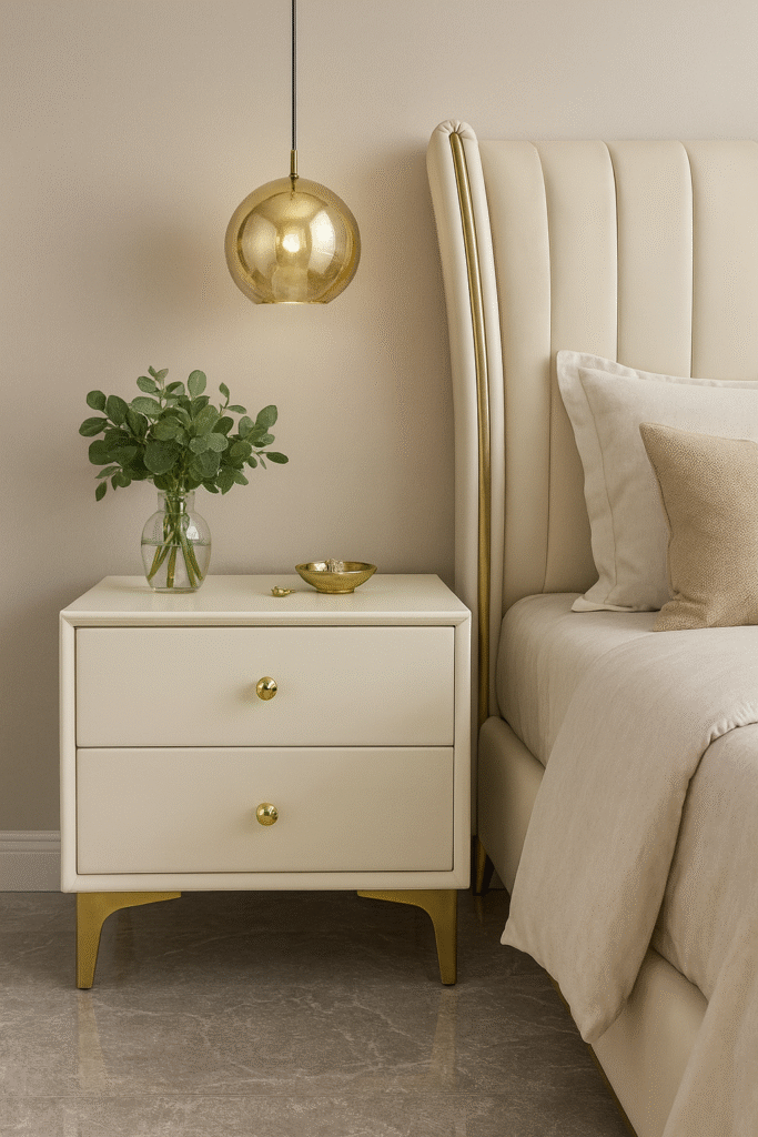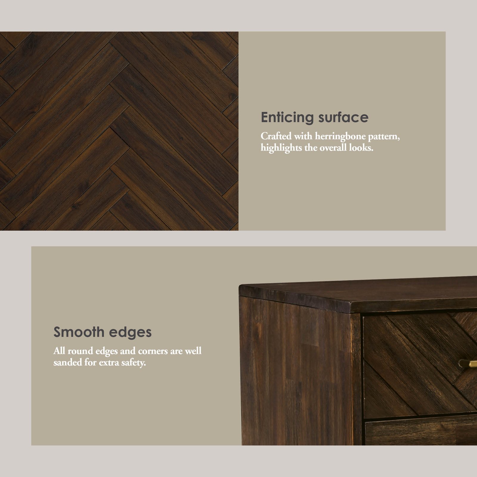 Sivan Bedside Table with 2 drawer with Dijon colour leg, Chocolate Tyrolean Beech body. The Sivan Bedside Table brings mid-century elegance with a rustic edge. Designed with a solid wood body supported by sleek metal legs, it combines durability with style. Two drawers provide ample storage to keep items neatly tucked away. Its balanced design makes it suitable for both contemporary and classic interiors. A practical and stylish solution for everyday living.