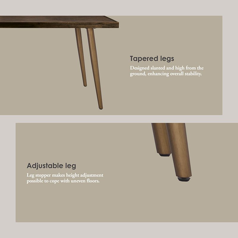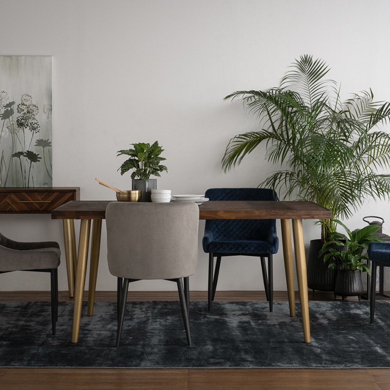 Sivan 900×1600 Dining Table with Dijon colour leg, Chocolate Tyrolean Beech body. The Sivan Dining Table fuses Mid-Century Modern design with rustic warmth. Built with metal legs in Dijon finish and a solid acacia wood top in chocolate Tyrolean beech, it delivers durability and style. Its extended rectangular design is perfect for family dining and gatherings.