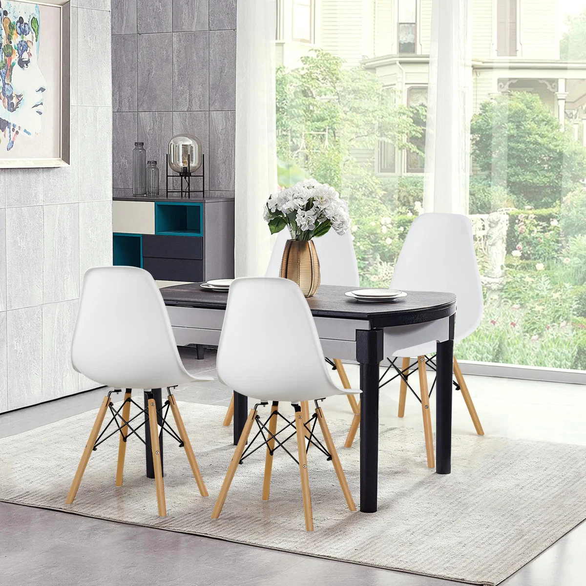 Add a touch of timeless style to your space with the Sleek Mid-Century Dinning Chair. This versatile piece features a comfortable molded plastic seat and a classic geometric wooden base, making it a perfect fit for any room. Its sleek design and neutral color palette make it easy to integrate into your existing decor.