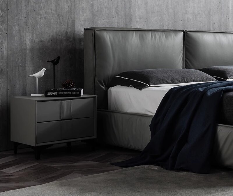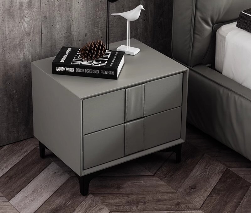 Leather Nightstand Side Table – Cloud Grey