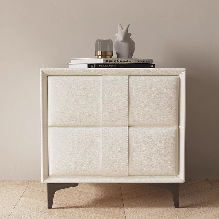 Symmetric Leather Nightstand Side Table – White