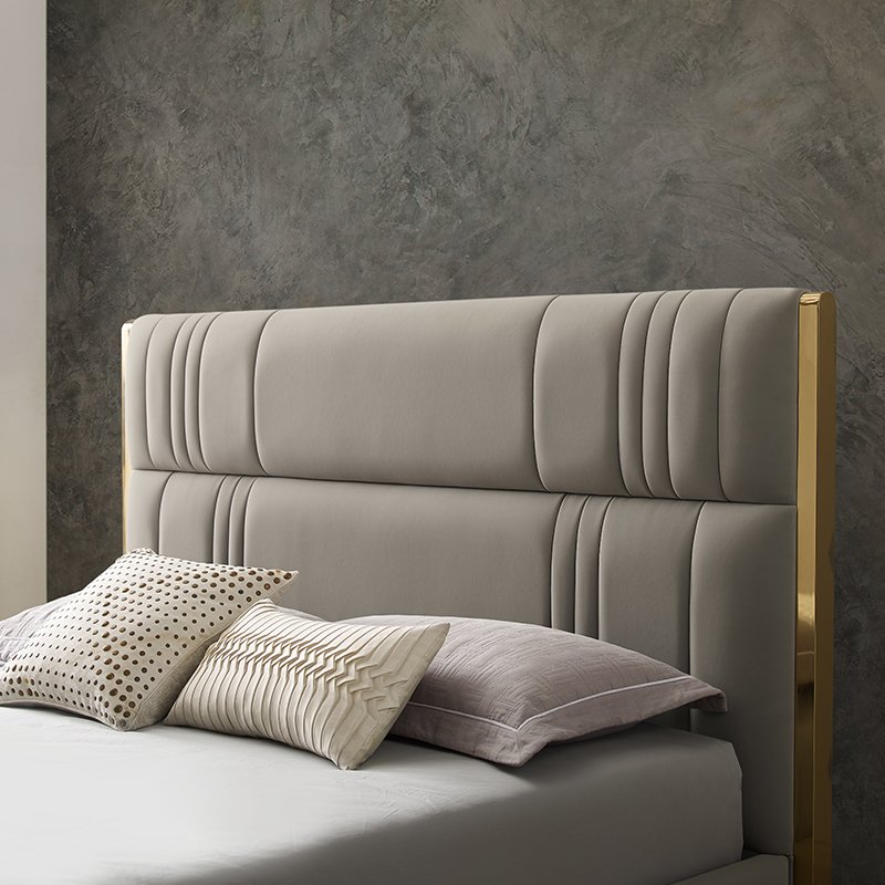 Its gracefully curved silhouette adds a soft, artistic touch, creating a statement of refined elegance that enhances any bedroom interior. The bed is elevated with titanium-plated accents, offering a sleek, modern finish that is resistant to corrosion, fading, and everyday wear, ensuring lasting beauty over time.